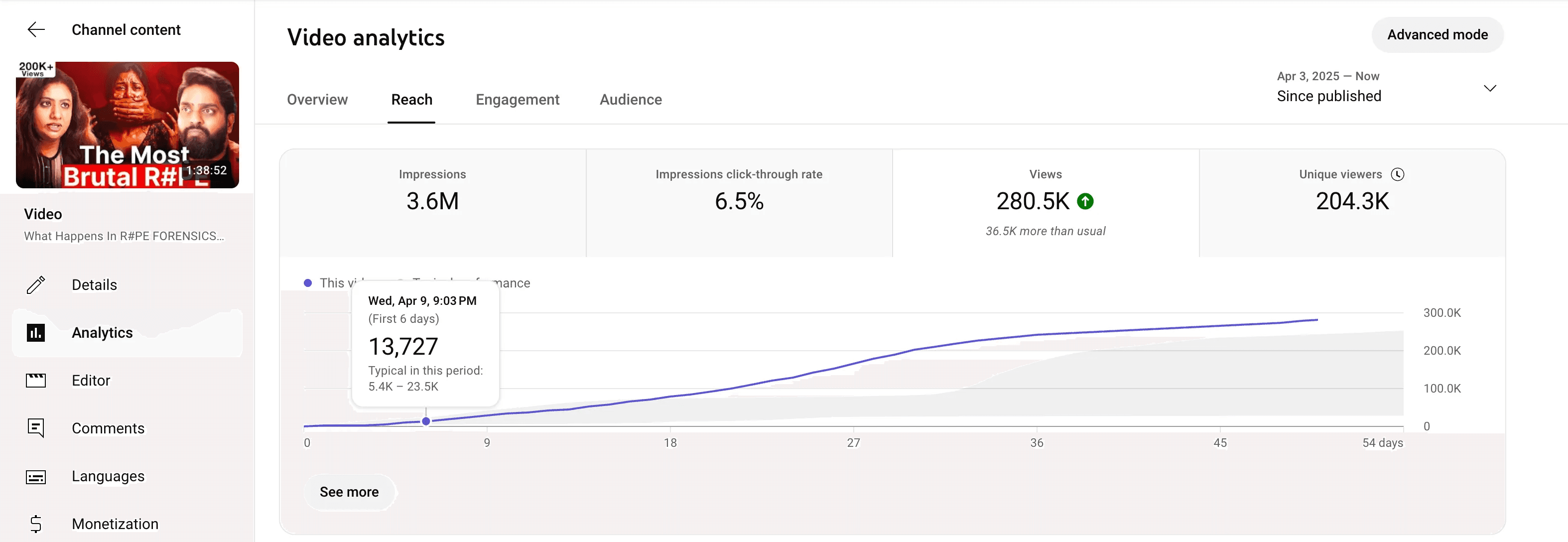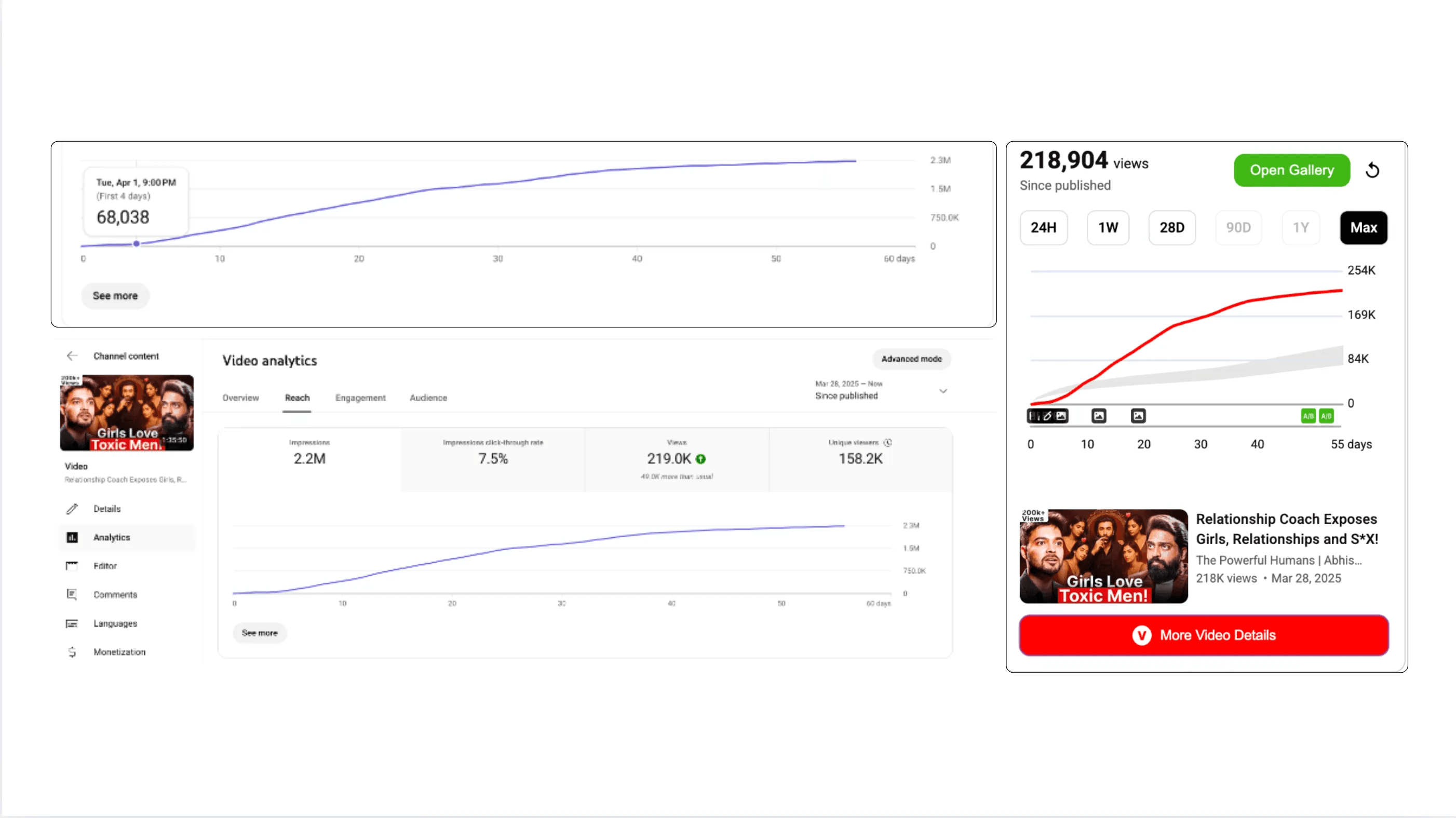 Another video that was underperforming, Got over 250k+ Views and a 7% ctr after our testing