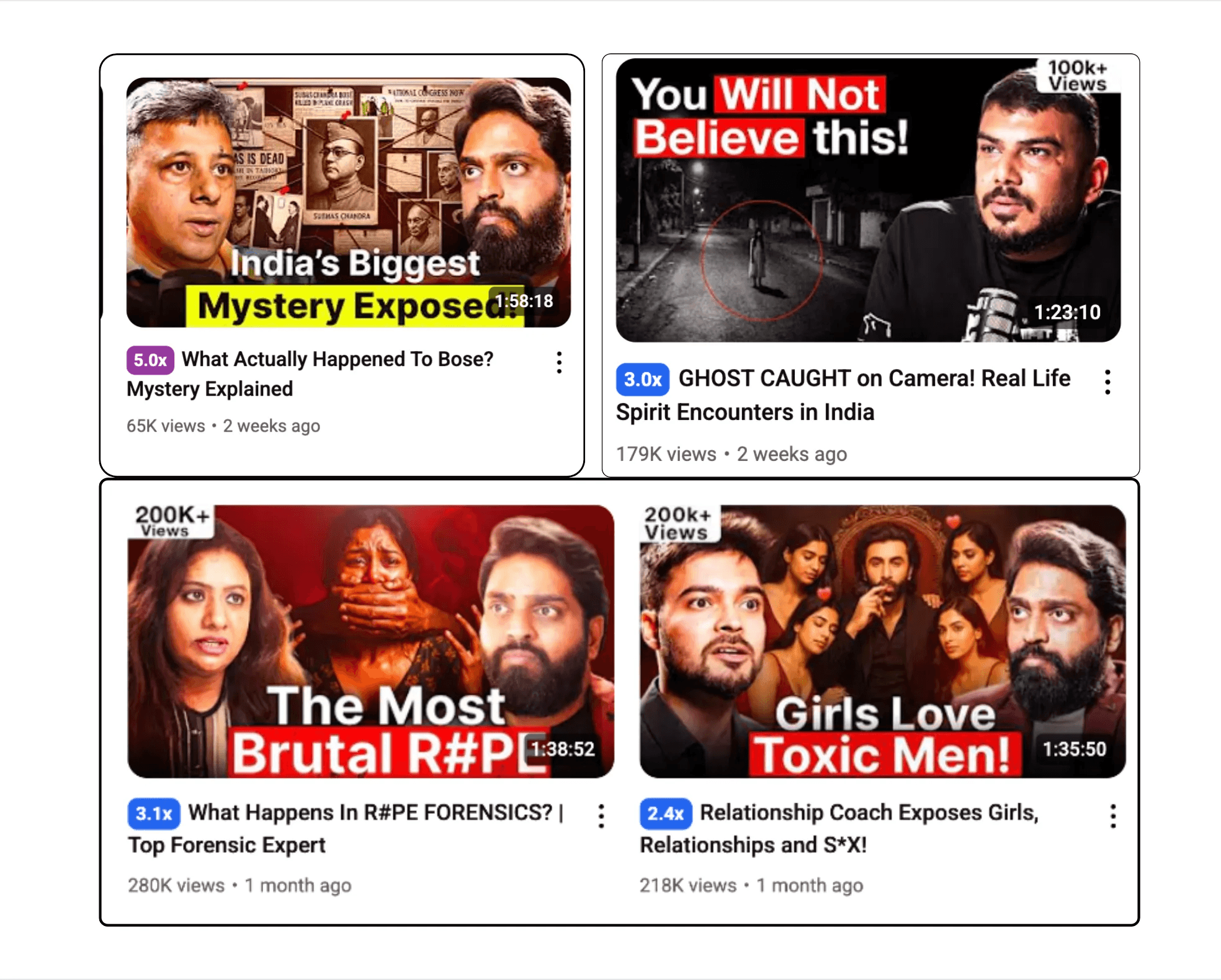 The content lacked a structured system for testing and research to identify the best-performing thumbnail and title combinations. Existing thumbnails were inconsistent in style, while titles failed to clearly communicate the podcast’s core value, leading to missed opportunities for engagement and discovery.